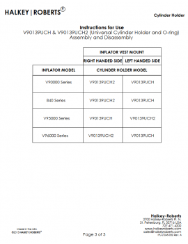für Inflator Typen V90000 Series, 840 Series, V95000 Series, V96000 Series